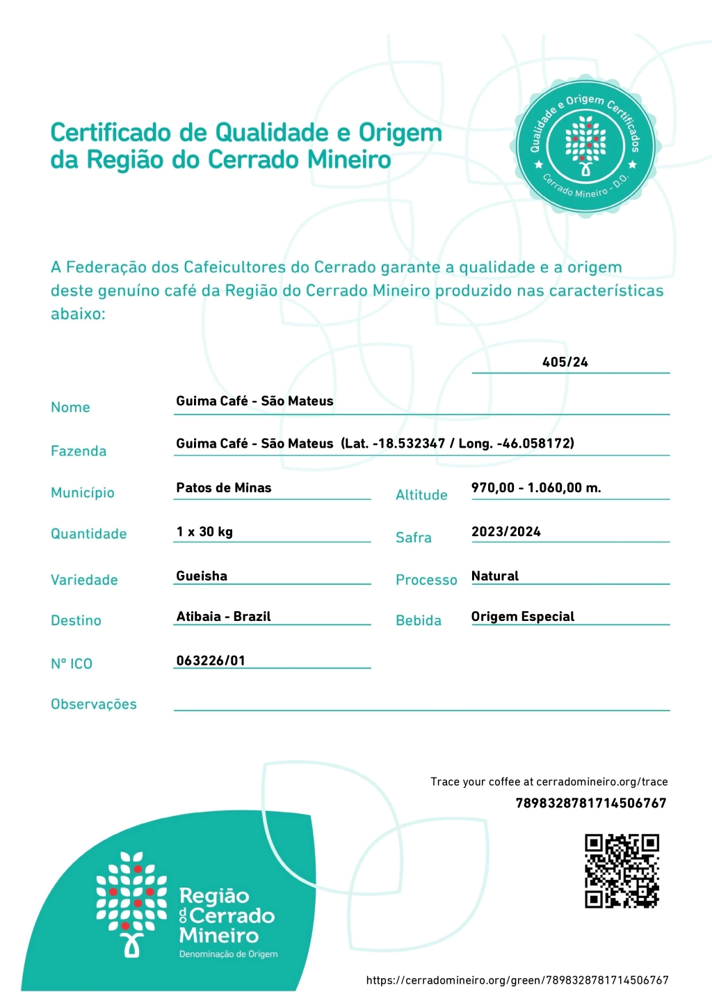 Café Especial de Região com Denominação de Origem – DOC – Cerrado Mineiro