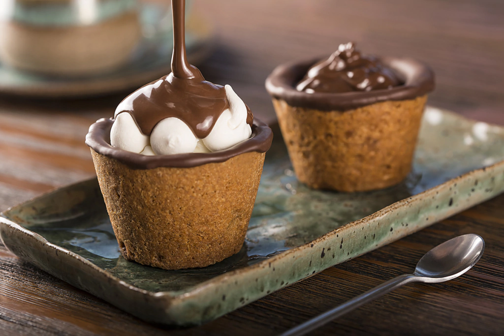 Copo comestível à base de massa amanteigada de cookie de baunilha com raspas de chocolate ao leite. É revestido por uma generosa camada de chocolate belga meio-amargo, que sela o copinho e permite receber bebidas ou recheios tanto frios como quentes!